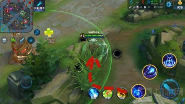 这个草丛对于很多英雄来说都是天选草丛,前可攻二塔,后可拔外塔,还能看蓝爸爸和守龙坑。如图,你需要避开敌方视野后依照箭头指示,从右下角叶子和圈最接近的地方混迹去,才不会被防御塔标记。如果中路外塔久攻不下,这里有两种打法: