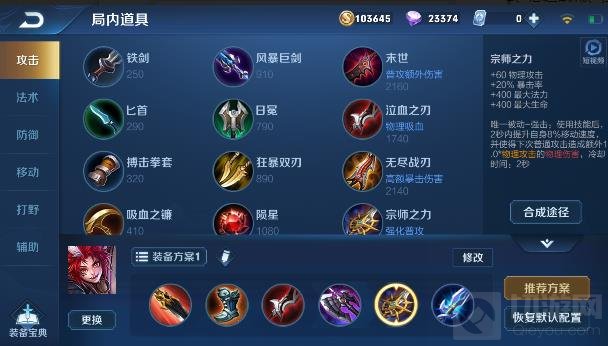【出装推荐】追击刀锋、急速战靴、泣血之刃、暗影战斧、宗师之力、名刀司命