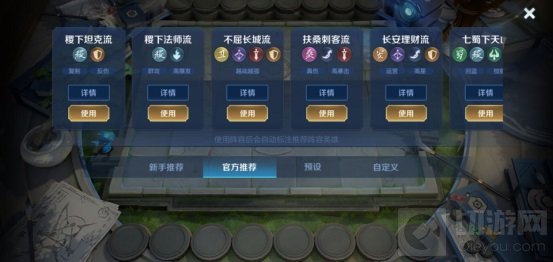 进入游戏之后会有新手推荐、官方推荐、预设和自定义4种,可以根据自己的实际情况来选择适合自己的,我是喜欢法师大招流的输出爆炸,不过不太好的是太脆了,后期需要用肉来填补一下这个缺点。