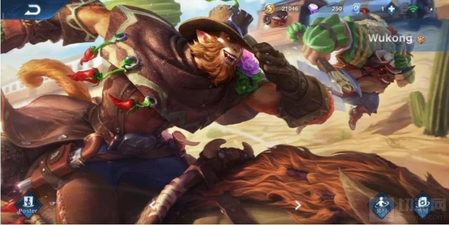 这款皮肤算得上是猴子最丑的一款了,比起至尊宝与地狱火差距不是一点半点。但是这次原画重做算是比较贴合西部的风格,孙悟空胸前还挂着一串辣椒。不过猴哥确定会吃这玩意?