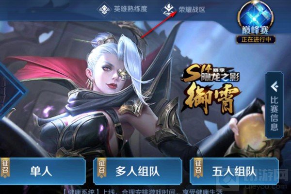 2、点进排位赛后,这时右上角会出现“荣耀战区”,点击进入。