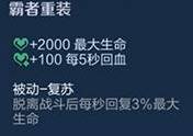 最后在出一个霸者重装,这件装备增加了恢复血量的速度和自身血量的上限。