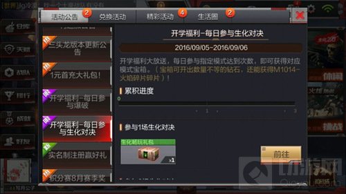 开学福利大放送,每日参与指定模式达到次数,即可获得对应模式宝箱。(宝箱可可开出数量不等的钻石,还能获得M1014-火焰碎片!)