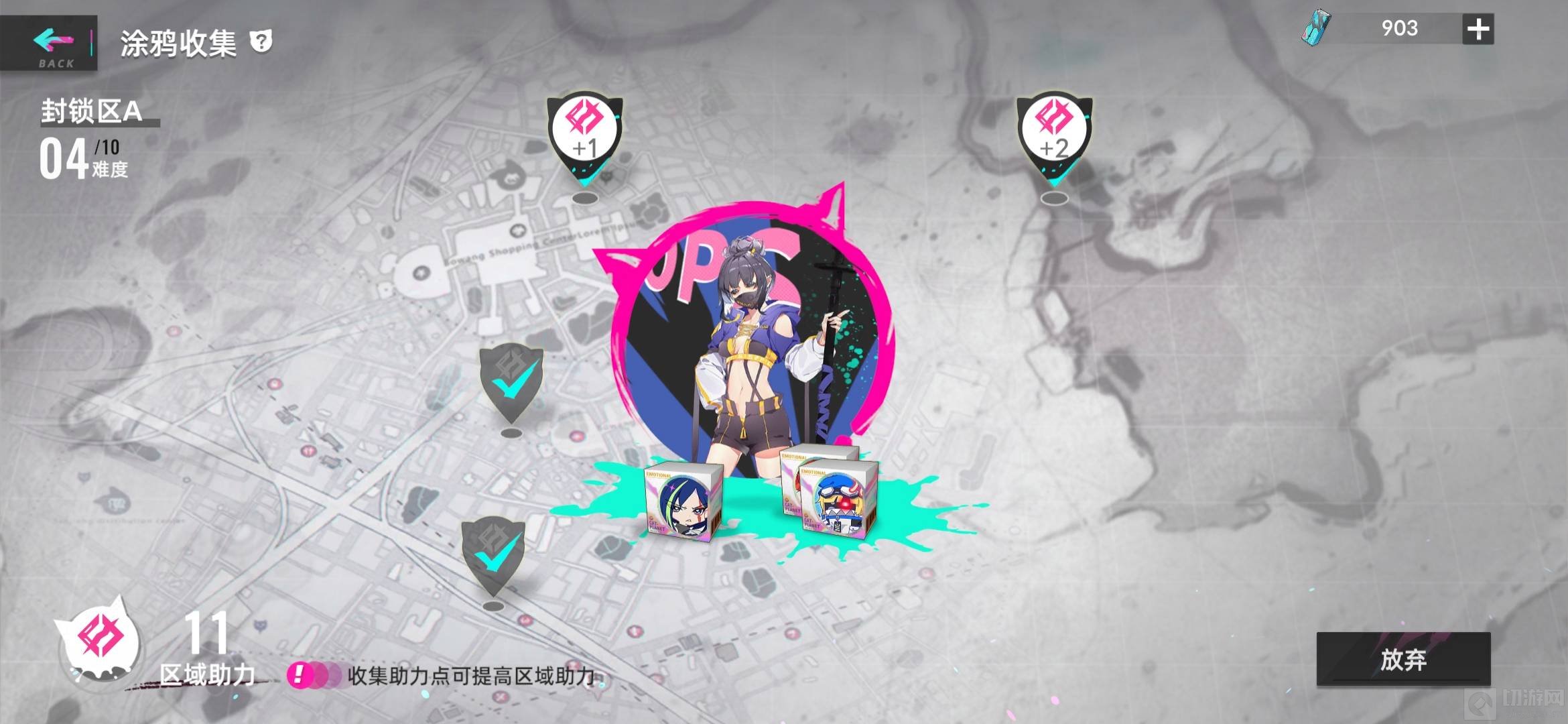 在猫之城的涂鸦收集玩法中,可以收集封锁区周围的助力点,能够提高区域助力。
