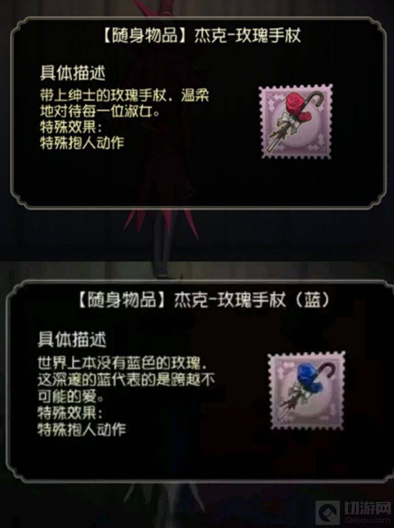2.当监管者杰克装备上玫瑰手杖之后,杰克的腰后方会出现一个玫瑰手杖,同时抱人动作也会发生改变,变成公主抱。