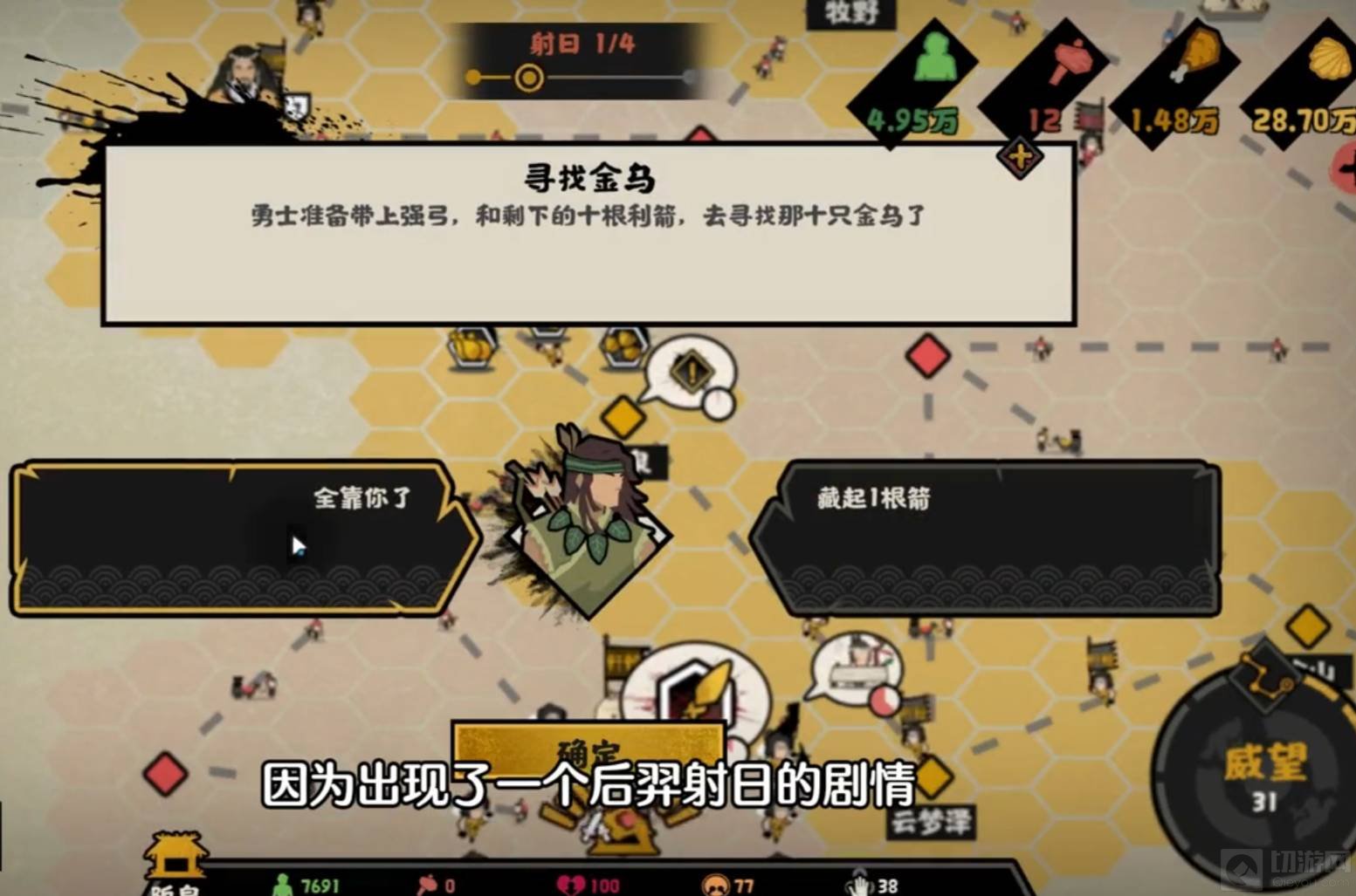 1.在触发后裔射日后,需要选择藏起一根箭,然后继续开图,才有后续的十日凌空。