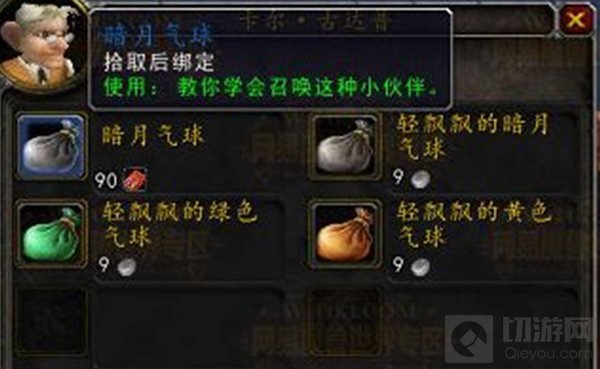 比如你在暗月马戏团可以看到许多商人,他们都出售各式各样的小宠物、坐骑、传家宝、旧世界套装和一些好玩的玩具,比如暗月气球。