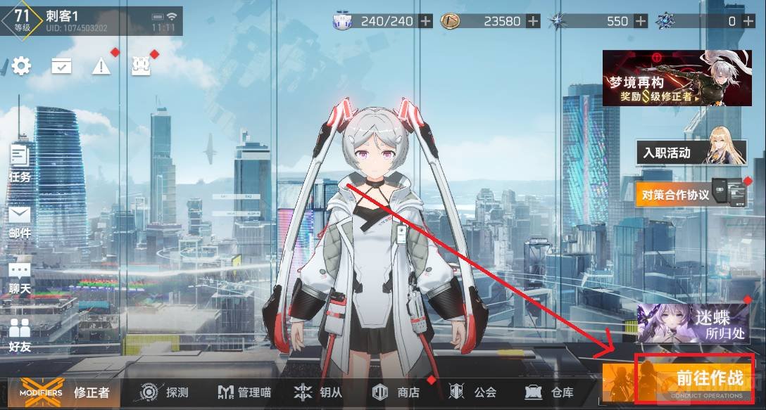 1、首先打开深空之眼,进入游戏首页,点击前往作战。
