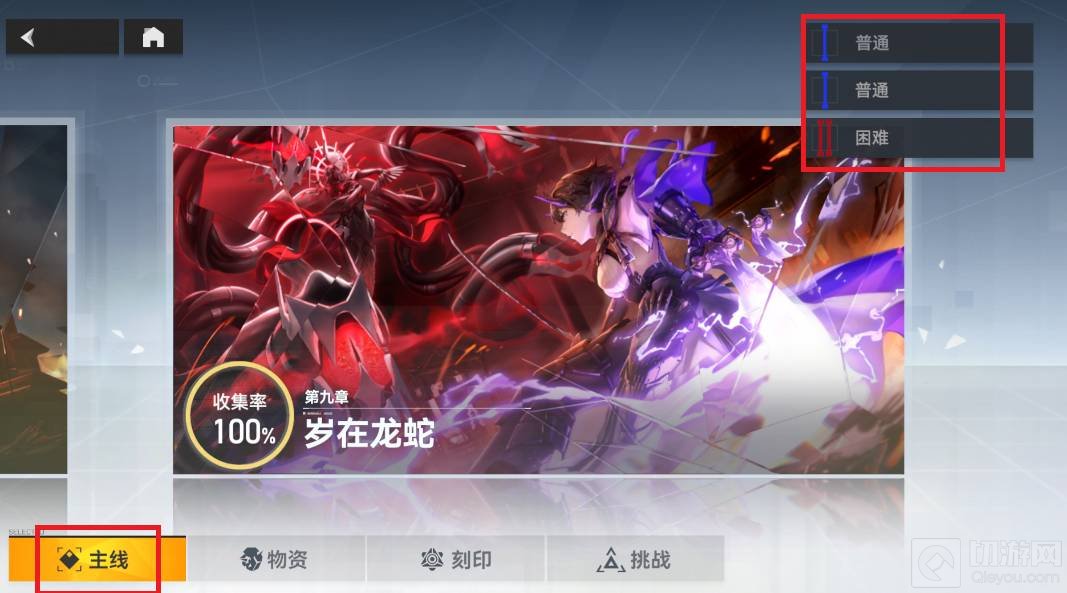 2、接着进入主线页面中,想要开启主线困难模式,需要先通过主线普通模式才可以开启。
