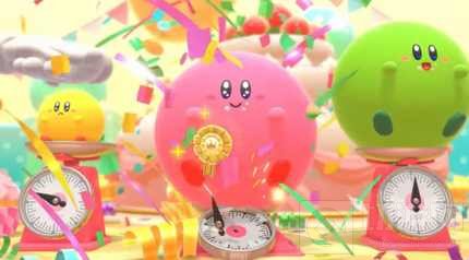 在《卡比的美食节》中,玩家所操控的卡比们将要挑战三种不同的项目:“比赛”、“小游戏”和“生存战”,在各个项目中吃到最多草莓的卡比将会获胜。其中“比赛”项目以竞速为主,卡比们需要一边吃路上的草莓一边滚向终点,终点的草莓堆数量各不相同,先到的吃最大份。“小游戏”相对较为轻松,卡比们将在一个细小场地里,争夺以各种方式出现的草莓。而最终决胜的战斗就是“生存战”,卡比们需要通过吃掉场地上关键的“复制食物”获取特殊能力,将对手从场地击飞从而抢夺对手的草莓。技能使用得当的情况下,之前落后的卡比也有可能反败为胜哦!