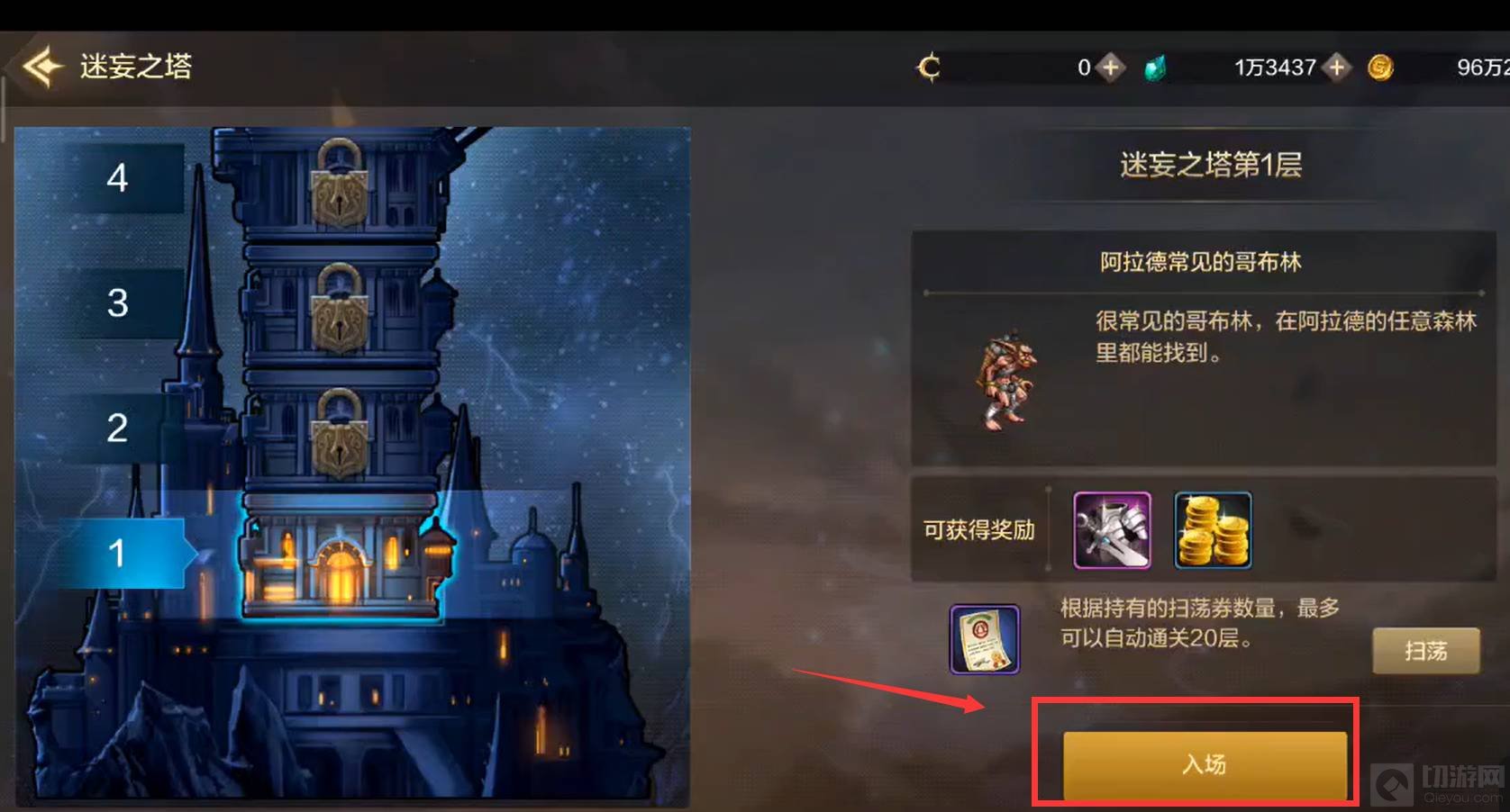 在DNF游戏界面中,点击右侧的‘委托’,接着选择进入‘迷妄之塔’,再点击右下角的‘入场’即可,需注意的是需达到20级才能解锁迷妄之塔。