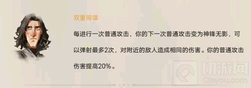 每进行一次普通攻击,你的下一次普通攻击变为神锋无影,可以弹射最多2次,对附近的敌人造成相同的伤害。你的普通攻击伤害提高20%。