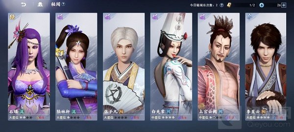 秘闻主要是获得侠客碎片用来升星,当然秘闻副本对象是已拥有的侠客,秘闻和砺剑录一样每天有次数限制,所以每天直接无脑刷完即可,江湖秘藏是没有次数限制的,秘闻优先打高品质的侠客,且秘闻只能上同样的侠客,例如打石瑶的秘闻只能出战石瑶一个人。