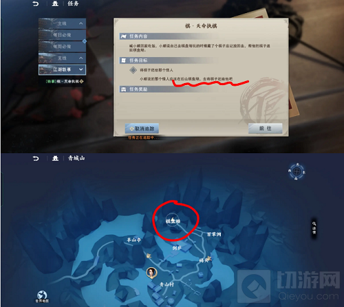 1、我们做完张三伯的【剑门龙王】任务之后,三伯会让我们去找【小顺】,找到【小顺】即可开启【棋·天命执棋】支线任务。