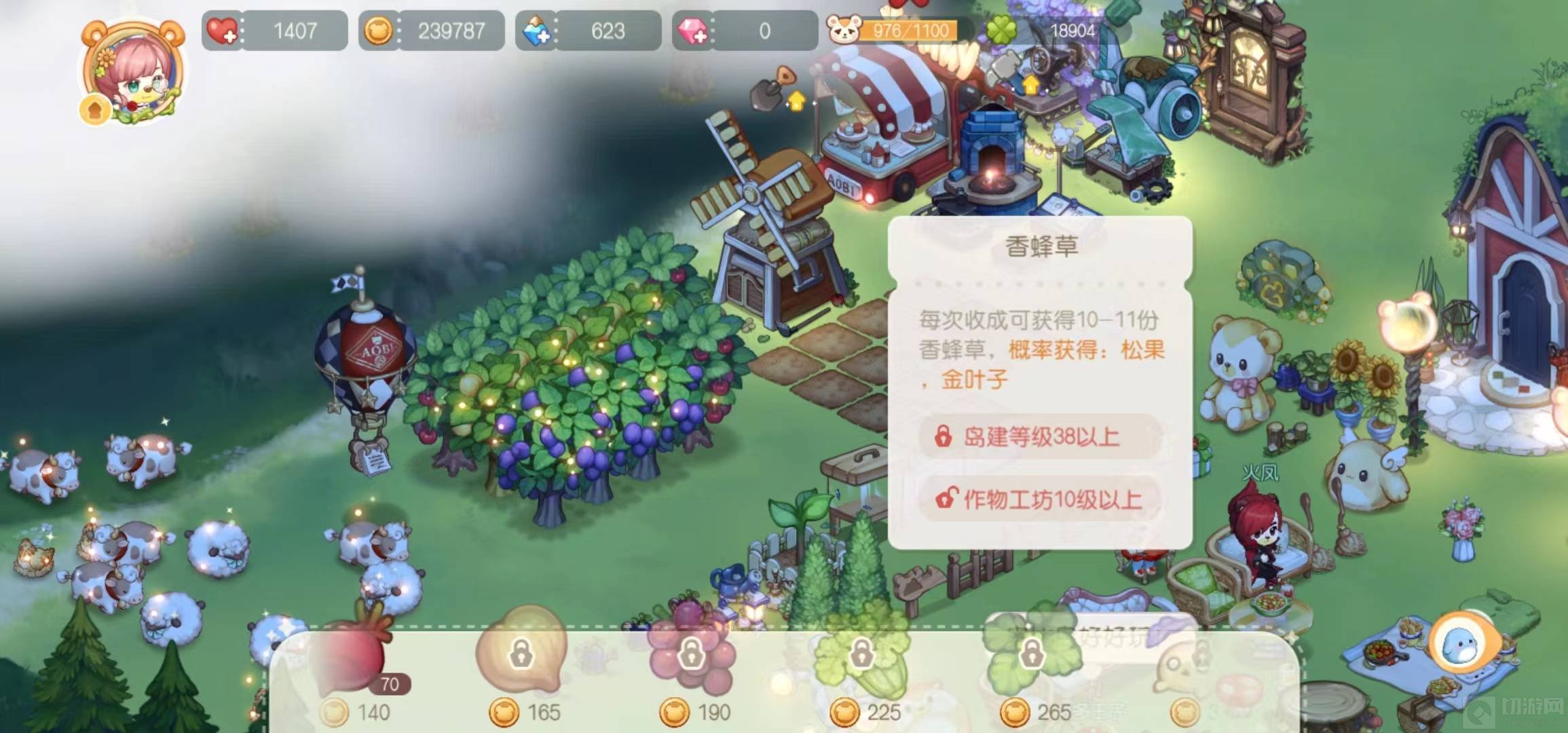 8、种植香蜂草,每次收成可获得10-11份香蜂草,概率获得松果、金叶子。