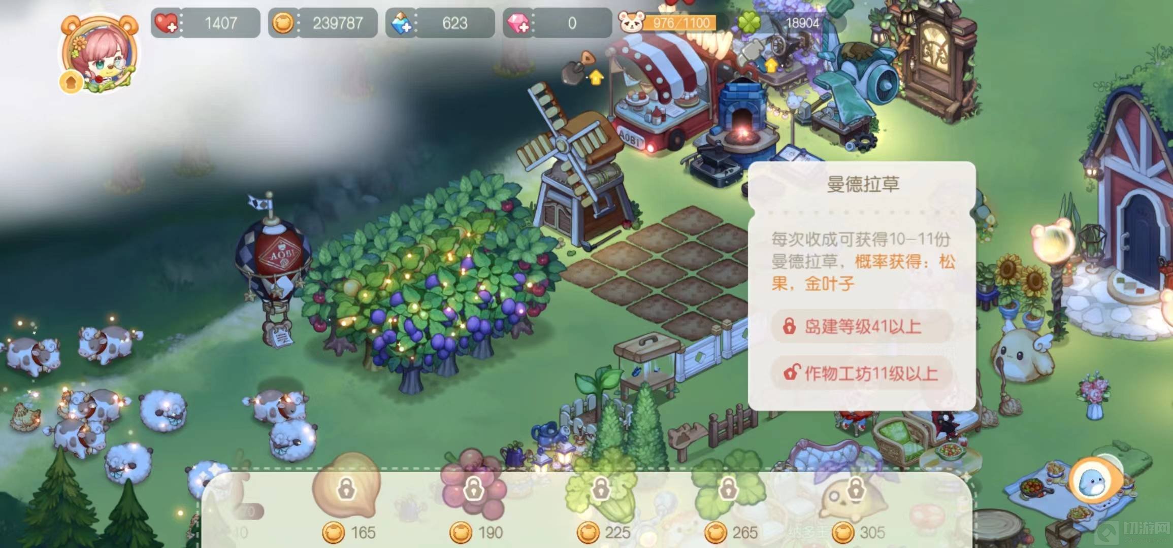 9、在土地上种植曼德拉草,每次收成可获得10-11份曼德拉草,概率获得松果、金叶子。