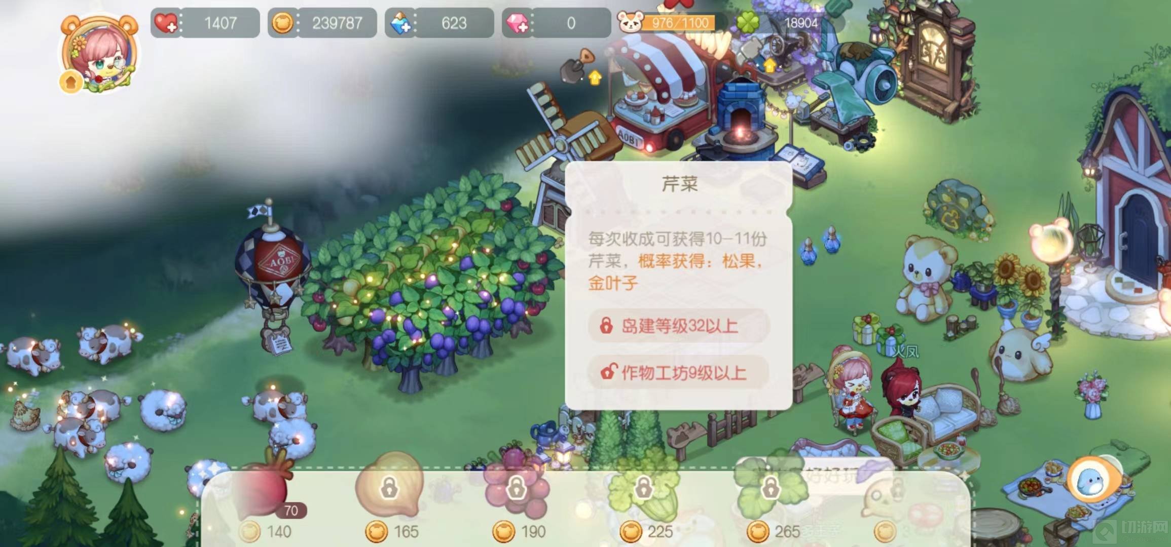 7、种植芹菜,每次收成可获得10-11份芹菜,概率获得松果、金叶子。