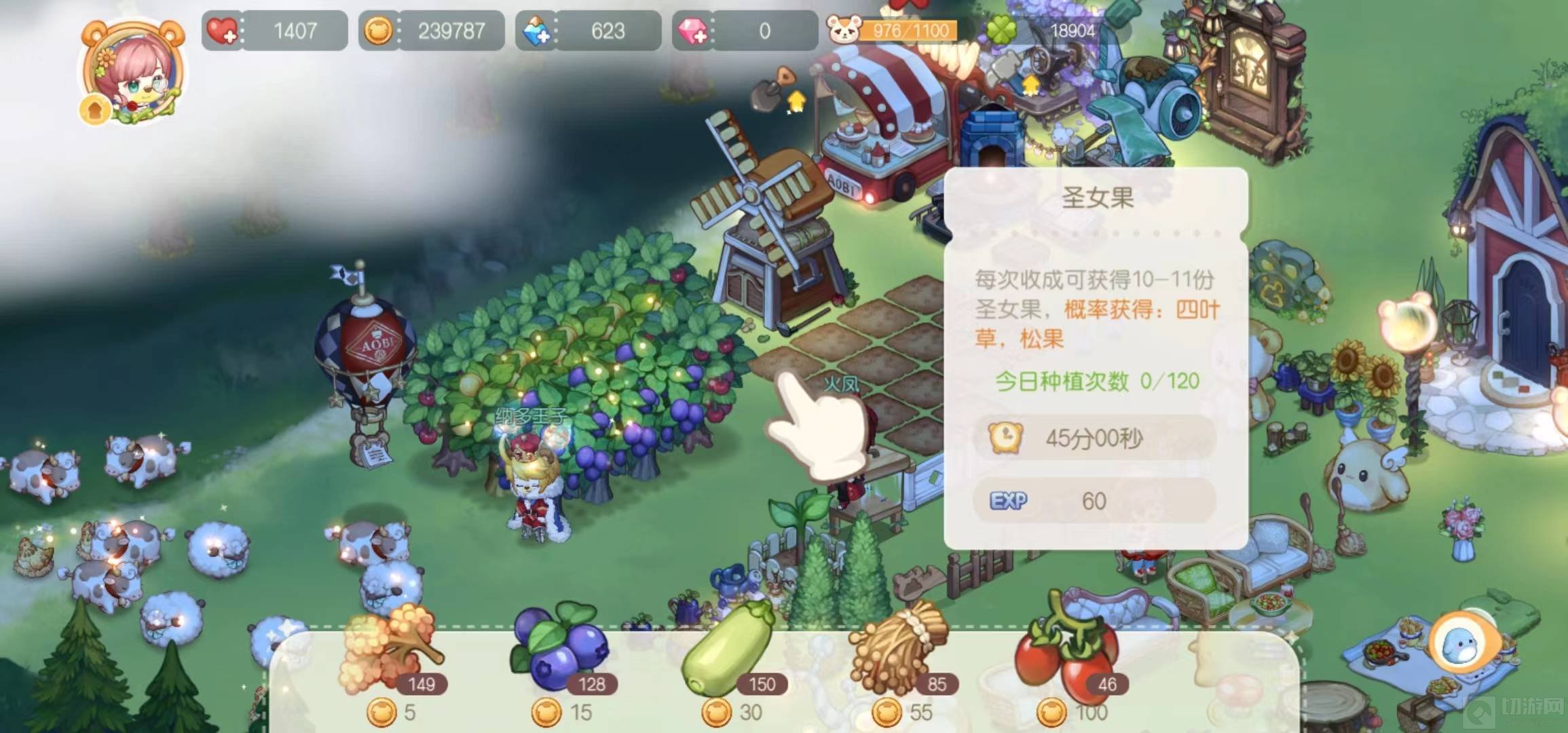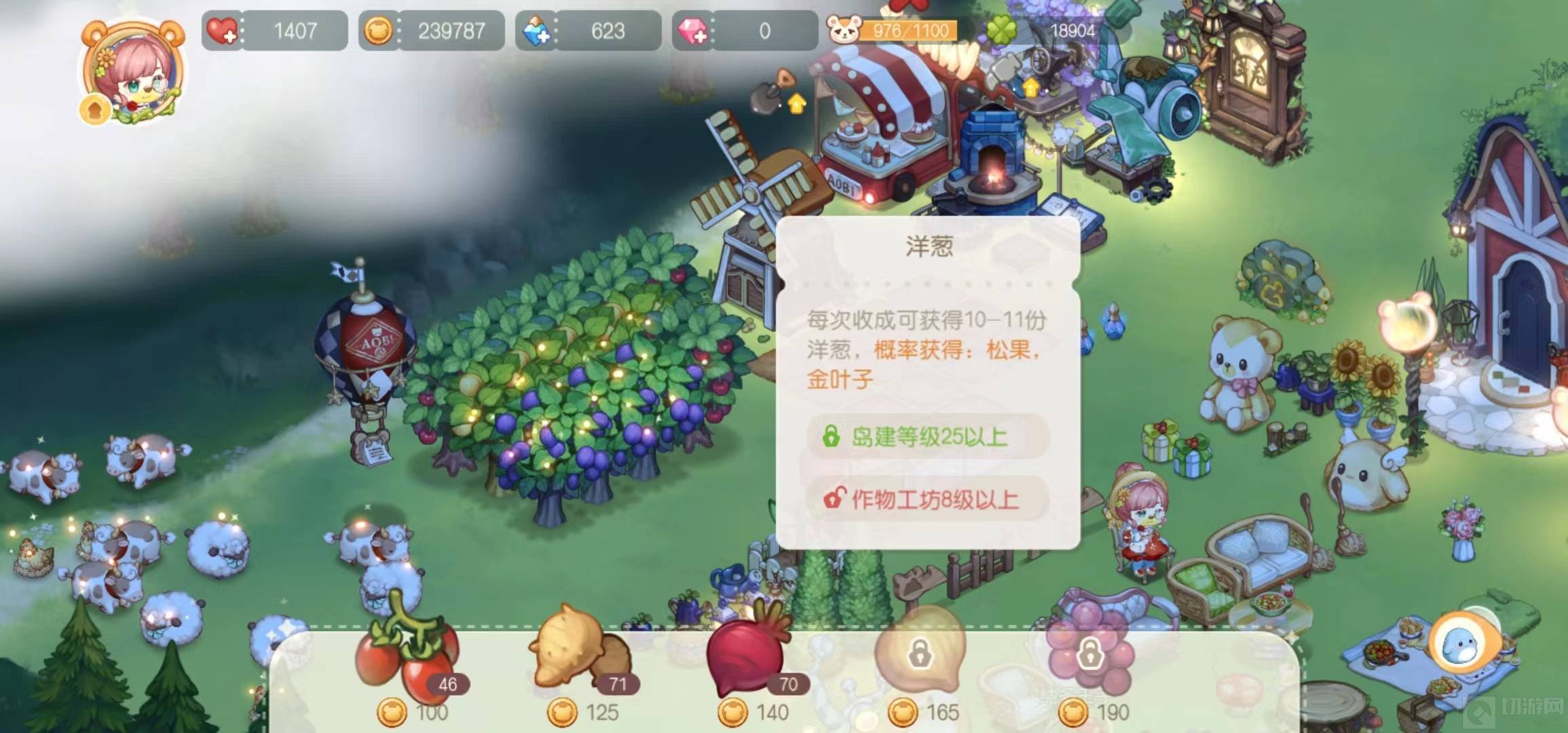 5、种植洋葱,每次收成可概率获得松果和金叶子。