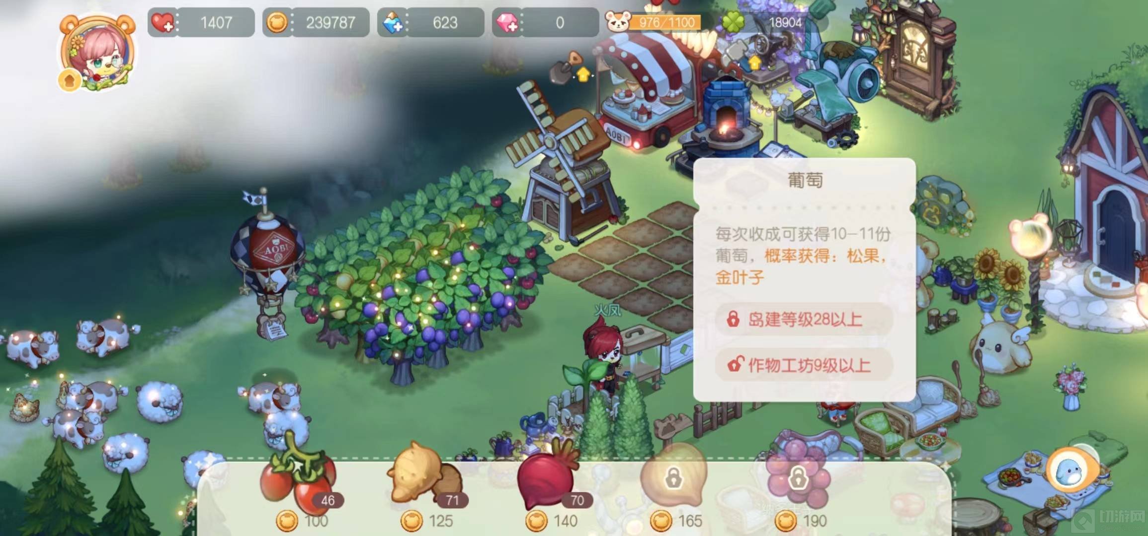 6、在土地上种植葡萄,每次收成可概率获得松果和金叶子。