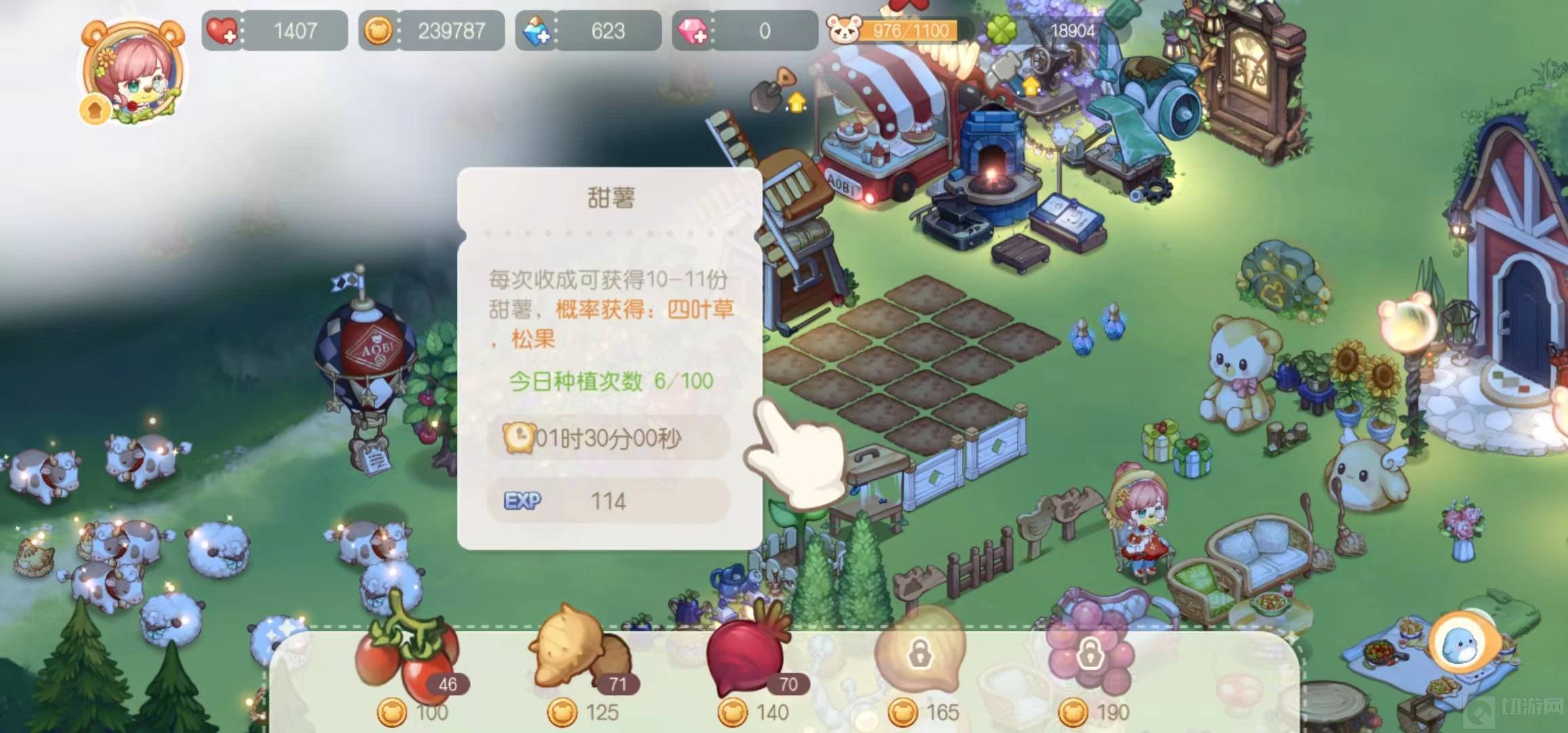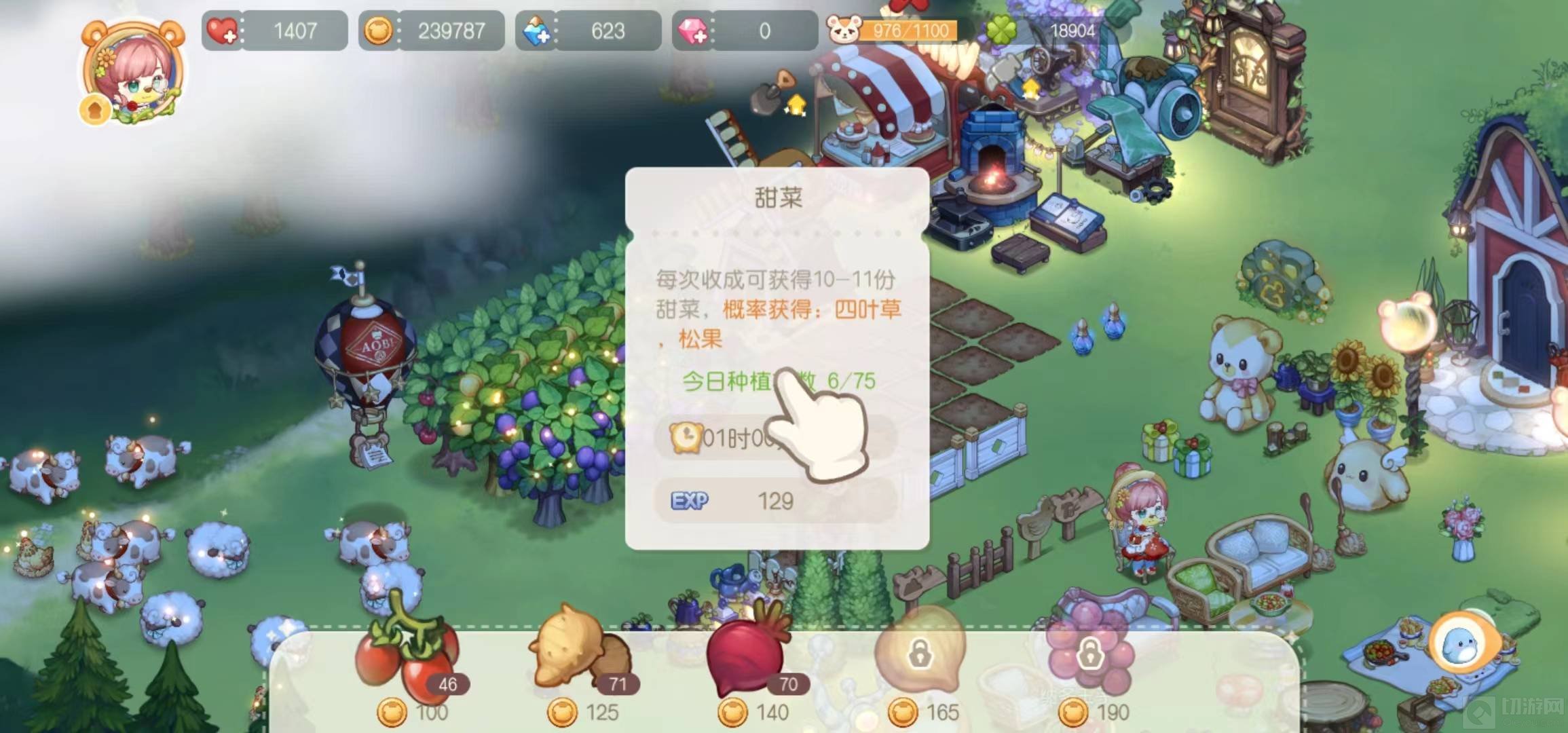 4、种植甜菜,每次收成可概率获得四叶草和松果。