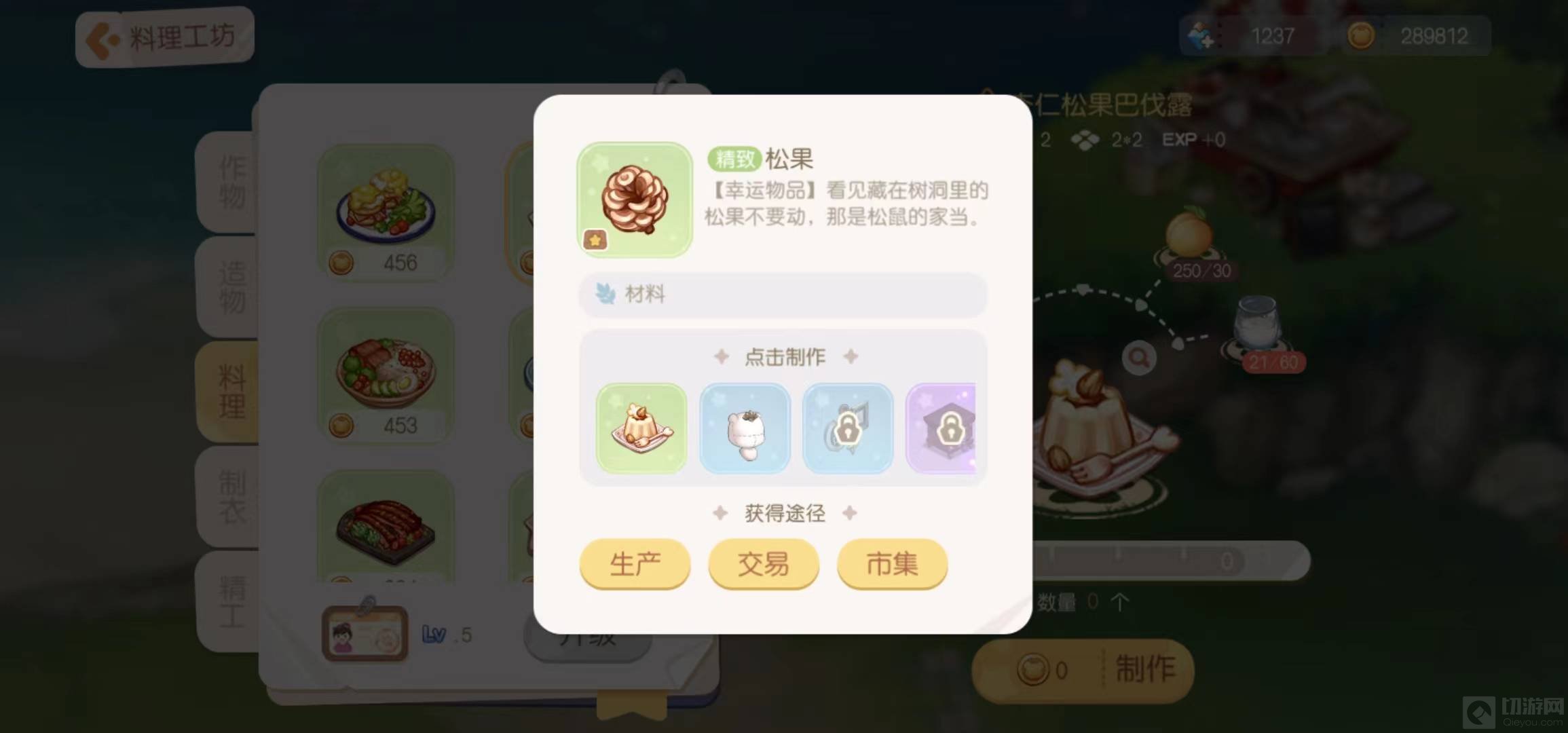 1、松果可以通过生产、交易、市集中获得,松果生产需要在我的小岛上种植概率获得。