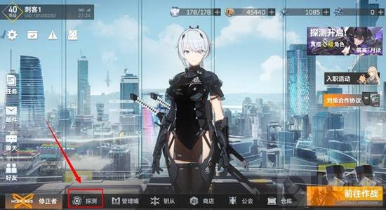 1、首先先进入到游戏的主界面,然后点击左下方的“探测”按钮即可进入抽卡界面。