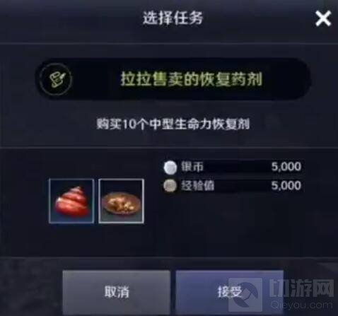 1.先赛林迪亚的海德尔村庄找到一位叫做拉拉的npc,领取拉拉售卖的恢复药剂任务。