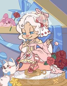微卷的白色秀发与淡粉的服饰相得益彰,展示着朵朵甜心的甜美。动作在精致的欧式蓬蓬裙和蝴蝶结之下更显优雅。微闭的凝眉与上扬的嘴角,似是在回忆那爱的甜蜜。低语着:玫瑰与爱,肆意生长。可情不知所起,一往而深。谓是玫瑰在眼,甜蜜在心。而动态的神态,又让朵朵·玫瑰甜心在优雅之外更添了一份俏皮。