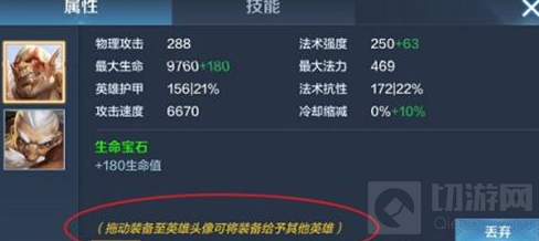 2、操作方法点击屏幕左边“背包”按钮——选择一件装备——将装备拖动至另一个英雄头像上即装备给目标英雄了