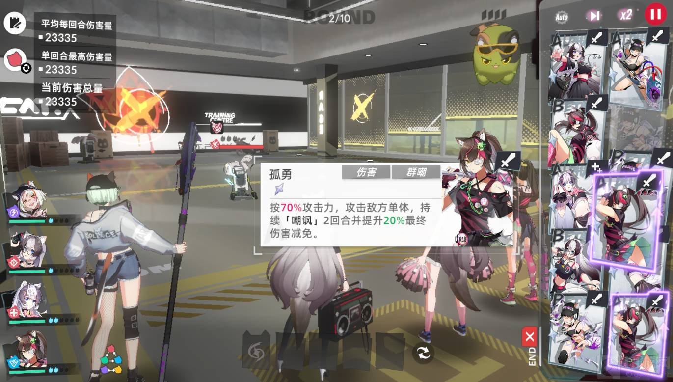 4、合卡技:在一回合内,每触发一次合卡,右上角的合卡槽就会充能一次,两次充能以上会在战斗时增强我方武装。具体增强属性与在战斗时携带的辅助猫猫有关。
