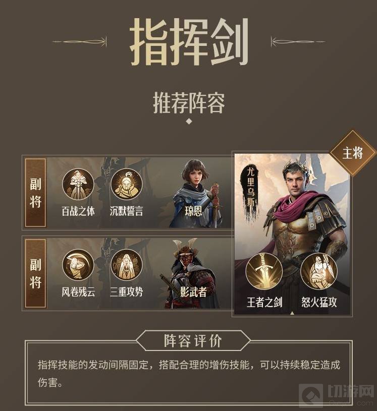 4、指挥剑阵容搭配玩法如下:指挥技能的发动间隔固定,搭配合理的增伤技能,可以持续稳定造成伤害。