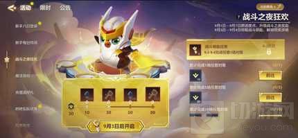 9月1日-9月7日战斗之夜期间累计登陆4天,进行10场任意模式对局,并在9月3日-9月4日任意进行一场对局获得“战斗钥匙”,即可累计进度值,获得主题站碎片、赛季末回顾头像等超值奖励,并解锁战斗之夜《金铲铲之战》分区福利,派对铲铲*200,直接兑换“源计划:胡 羽饰骑士”。