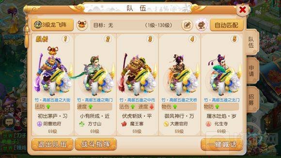 3、阴曹地府 方寸山 魔王寨 大唐官府 化生寺。这套阵容主要靠的是方寸山的控制配合上大唐和魔王寨的点杀,打BOSS非常快。