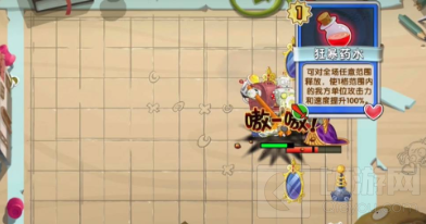 8、在刚刚召唤出来的僵尸到达目标地点时,我们使用狂暴药水,提升我方僵尸的攻击力。