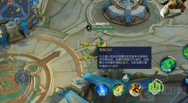 被动:自己可以在状态栏看到被动生效范围,自己和队友可以在状态栏看到额外金币收益的数量