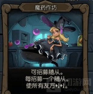 魔药作坊:可招募随从,每招募一个随从,使所有友方+1+1