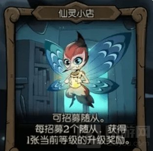 仙灵商店:可招募随从,每招募2个随从,获得1张当前等级的升级奖励