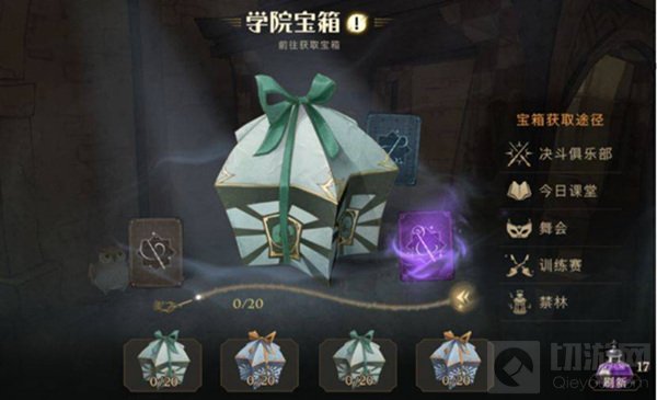 活跃度怎么来呢?点击宝箱会有提示:可以是决斗、上课、跳舞、训练、禁林都能获得活跃度,而是是无限制的,意思是如果你不喜欢PVP,你完全可以不断地跳舞拿满今天的宝箱。