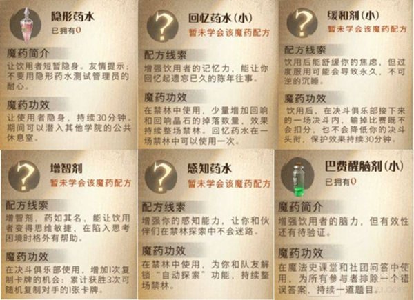 而且内侧很多人不重视魔药,魔药在PVE和PVP作用同样很大,我随便给大家截几张图感受一下效果(放几张功能性药剂,那些战场性的可以去寝室查看)