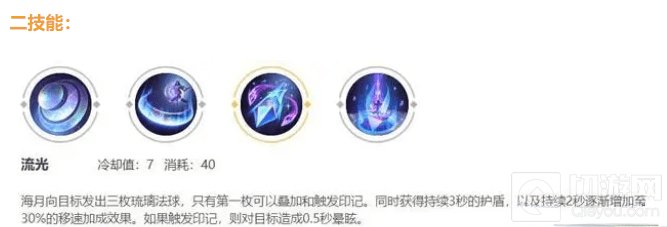 二技能在施法瞬间可以为海月提供30%的加速效果。