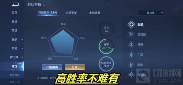 但不可否认的是,评分基本上和你的各项数据相互挂钩,最粗浅的就是表面的数据,像击杀数死亡数以及助攻数,当然助攻数和击杀数越多越好,死亡数越少越好,当然是最表面的现象。其实再深入一点就是各种的数据,包括伤害量、承受伤害量以及参团率,当然了这些数据越高,那么评分自然也会水涨船高。但是要值得注意的一点就是,每一个职位他们对于这些数据的采取和考究并不是采用同一种标准,这里是很多人的一个误区。