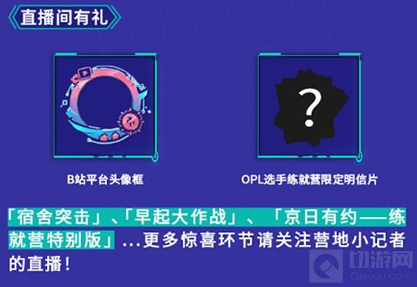 此外,每日直播助力前5的观众将获得官方送出的【OPL暑期赛冠军头像框*25】,各位先到先得。每日值班的主播还将在直播间中抽取十位天选之子,为他们送上OPL练就营限定明信片,让我们现场见证真欧皇。