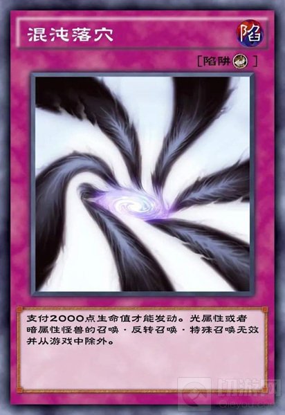 这卡包中最后一个超凡位给到了混沌落穴,这张卡需要支付2000生命值才能发动,不过效果却相当给力,能让光暗属性的怪兽三召无效并从游戏中除外。高贵的三速卡搭配稳定针对光暗热门属性的特点是我看好这张卡的主要原因,而且这张卡本身带有落穴字段,完美契合虫惑魔系列,在抽特莱恩的时候可以顺手捞上两张。