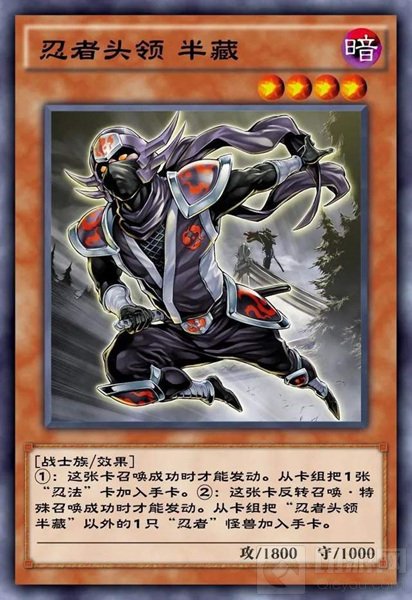 第一张卡忍者头领半藏是之前先行包中出现过的卡牌,很多玩家对其都非常熟悉了。这张卡是忍者本家的大核心卡牌,在召唤成功的时候可以检索卡组中的一张忍法卡。除此之外翻转或者特殊召唤成功的时候可以检索半藏以外的忍者怪兽。其作用主要是忍者本家的展开以及赚卡手段,配合忍者本家变化之术做出高等级的大怪。我个人还是比较推荐在这个包抽齐忍者的,毕竟这一体系的质量本就非常给力,再加上忍者在超量时代还会再崛起一波,属于是未来可期的好卡!