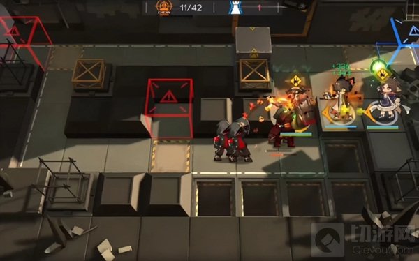 开局先在阿的背后部署调香师,然后在左上角这块部署箱子,改变敌人的行径轨迹和路线。