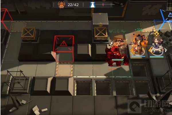 最后是双红刀哥,再次开可颂技能把这俩推下去,而最后一波敌人数量是最多的,留好阿的技能输出即可。因为敌人是远程输出,给足了可颂回转技能的时间,敌人接近的时候再开技能推下去即可。整体来说没难度,把握好可颂还有阿开技能的节奏和频率就好。