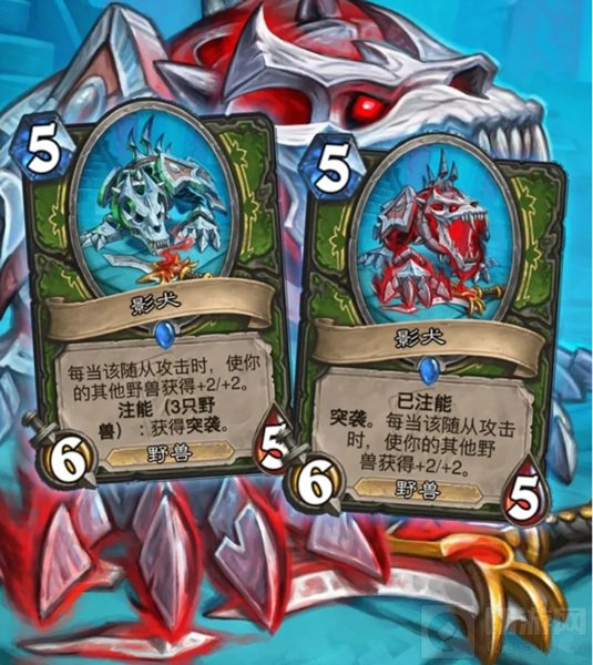 猎人的另一张新卡影犬是一张注能卡,而且注能的需求是三只野兽,也就是说其他随从类型死亡后不能给这张随从注能,和之前萨满的图腾法术一样,看起来迷你系列的注能卡都是要比主版本注能卡注能难度更高一些。这张牌本身是没有突袭的,但是Buff效果又需要攻击才能生效,如果放在野兽猎卡组里,拉出来没法动就没意义了,但要是放在T7猎卡组里,5费又显得稍微高了,所以就很尴尬的卡在了中间,但好歹也是猎人少有的群体buff手段,看看新版本上线后会不会有上场的空间吧……