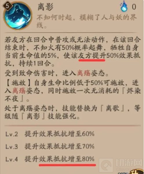 当对面有较多可抵抗的干扰时,配合骰子鬼御魂自带的2件套和御魂里部分抵抗就可以有至少20的抵抗了,如果你的阵容带上阿离,阿离结界起舞给红叶增加80的抵抗,那样红叶就可以有100多的抵抗了。甚至如果对面有上小山风你补一个不见岳还能有更多抵抗。
