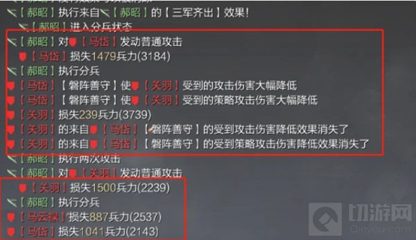 同时,郝昭攻击距离只有2,算上曹操增加的,只有3。意味着必定打到对面中军或者先锋,这个时候吃着神赏与衡轭的郝昭,配上三军的分兵。一刀下去随便都是3000血!