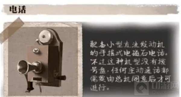2、电话——这个电话配备了小型的直流发动机,不过这种电话没有拨号系统,拿起来之后只能跟外界的总机房进行通话。其实这个就是双监管者模式中用来和庄园主人通话的工具了,在游戏中无论是监管者还是求生者都可以使用它来对话到自己想要的道具,但是前提是自己有足够的积分!